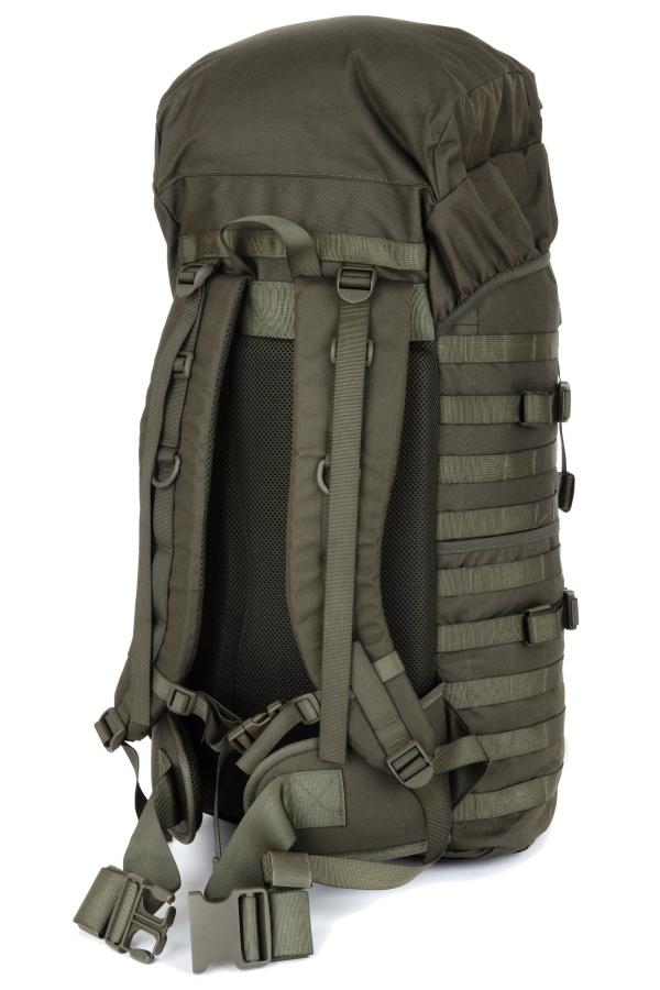 sterke 40 liter rugzak, voorzien van modulair bevestigingssysteem aan de buitenzijde. incl. heupband en zachte schouderbanden.